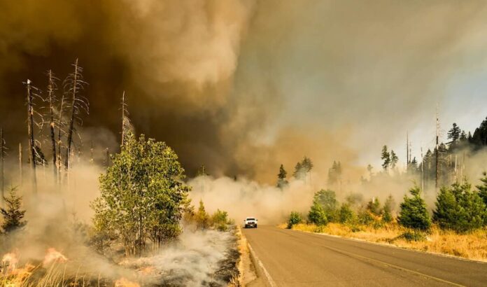 Os desastres em questão são incêndios florestais, que assolam o oeste dos EUA, e furacões, que atingiram o sudeste. Em ambos os casos, as temperaturas mais altas alimentaram aumentos no número e na intensidade dos desastres.